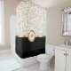 Un rideau de douche classique dans un design monogramme que vous pouvez personnaliser avec votre propre famille ou votre nom initial. Conçu en or, noir et blanc avec un motif abstrait qui ajoute une touche de classe.