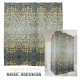 Un beau rideau de douche en brique dans les tons gris, bleu pâle et moutarde avec un charme urbain. Cette image est une photo originale de JLW_Photography