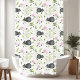 Adorable motif de chat noir avec rideau de douche à fleurs rose parsemé sur un arrière - plan blanc neutre. Visitez notre boutique pour voir nos articles de décoration de bain assortis.