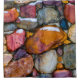 Mur humide de serpents dans une neige mouillée et pluie hiver. Pierres colorées de différentes formes. Certains sont recouverts de neige. Simulation de peinture à l'huile à partir d'une photographie. rideau de douche pour décorer votre salle de bain pour le plaisir et la bonne humeur.