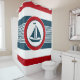 Design nautique avec décoration de voilier en forme ronde sur bleu, rouge et blanc rayé arrière - plan
