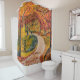 Le tableau représente l'automne enveloppant la forêt. Les couleurs explosent de rouge et d'oranges. Le sentier forestier encourage la marche. Le graphisme est spectaculaire sur le rideau de douche.