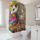 Un opossum de style psychédélique noir et blanc sur un arrière - plan ondulé et coloré.