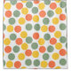 Ce rideau de douche a un design géométrique de points en corail, or et vert sauge.