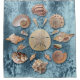 Voici un mandala de coquillages sur un arrière - plan de corail bleu.