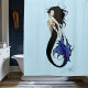 Une sirène d'encre tribale avec du bleu dans la queue sur fond de bleu clair,