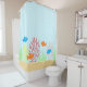 La vie marine avec poissons orange et bleus jouant au milieu d'un récif sablonneux de corail et d'algues, au milieu des bulles océaniques.