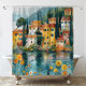 Rideaux De Douche Whimsical Italian Lakeside Village Art