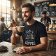 Zeigen Sie mit diesem männlichen T - Shirt Ihre Liebe für Kaffee mit dem Zitat "Liebe ist in der Luft und es riecht wie Kaffee." Dieses Shirt mit feinem Retro-Buchstaben ist komfortabel und auffallend. Es eignet sich hervorragend für lässige Ausflüge, Besichtigungen in der Cafeteria oder für ein gemütliche Zuhause. Dieses Shirt ist ein Geschenk für jeden Kaffeeliebhaber und verleiht jedem Kleiderschrank eine persönliche Note.