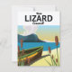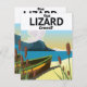 Lizard Cornwall Seebadeplakat mit einem Fischerboot am Strand.