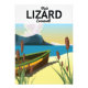 Lizard Cornwall Seebadeplakat mit einem Fischerboot am Strand.