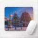 Sonnenuntergang überdacht im Schnee Riga Riga Rathausplatz im Winter in Riga, Lettland. Aussicht auf das berühmte Haus der Schwärme und die Statue von Roland gegen den blauen Himmel mit Sonnenuntergang.