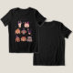 Whimsikisches FrauenHalloween-Shirt mit handgezeichneter Darstellung verschiedener Hunde in Kostümen. Im Text steht "bellen oder Leckerei".