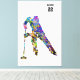 Watercolor-style artwork of a male ringette player in motion, holding a stick in a dynamic stance. The expressive splashes of vivid colors capture movement and energy, creating a striking visual effect. Ideal as a stretched canvas print for sports-themed interiors or contemporary art collections.