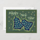 Creative imaging, effects, are the result of, this uniquely-designed, drawing, of two, spruce-green, colored bells, outlined in midnight-blue-with yellow stars, and Holiday greeting, displayed across, a starry, olive-colored, with blue, sky.