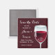 Heben Sie Ihre Weingläser auf die Braut- und Bräutigam und feiern Sie mit einem Weinthema und sparen Sie den Datums-Magneten. Ein Glas Rotwein steht vor einem bordeauxroten Hintergrund. Seien Sie vorsichtig, den Wein zu trinken, denn die Hochzeitsringe sind am Ende des Glases. Ein Spaß rettet den Dattelmagnet für eine Hochzeit, die auf einem Weinberg oder Weinkeller stattfindet, oder einen, der sich um Wein und gute Freunde dreht. Verfügbar mit passenden Produkten.