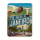Eine lebendige und nostalgische Darstellung von Rio de Janeiro, Brasilien, bekannt für seine atemberaubende Landschaft und lebendige Kultur. Das Design vereint symbolträchtige Sehenswürdigkeiten wie Christus der Erlöser, den Zuckerhut und die atemberaubenden Strände von Copacabana und Ipanema. Das Kunstwerk ist in einem Vintagen Stil gehalten und erinnert an den dynamischen Geist und die landschaftliche Schönheit Rio, der die Besucher einlädt, seinen tropischen Charme und seine kulturelle Lebhaftigkeit zu erleben.