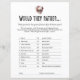 Bringen Sie Ihr RIP 20er-Party mit diesem "Würden sie lieber"-Spielblatt zum Leben, um zu sehen, wer den Ehrengast am besten kennt! Kaufen Sie eine Kopie für jeden Gast und ließ den Spaß beginnen. Ideal, wenn Sie ein 30. Geburtstag Party feiern, dieses niedliche Design Features und Skelett und Blumenelemente.