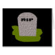 Diese Grußkarte enthält einen grauen Grabstein mit RIP in tropfendem Text, stehend auf einem grünen Grasflächen. Der Hintergrund ist schwarz, passend zu diesem morbiden Design. Die Innenseite der Karte ist leer, sodass Sie entweder Ihre Nachricht selbst schreiben oder die Schaltfläche "Anpassen" nutzen können. Durch Anklicken dieses Buttons haben Sie die Möglichkeit, Ihren eigenen Text in die Karte einzutragen, mit der Freiheit, aus vielen verschiedenen Farben und Schriftart zu wählen. Sie können auch die Hintergrundfarbe des Karteninners ändern, wenn Sie möchten.