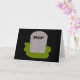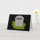 Diese Grußkarte enthält einen grauen Grabstein mit RIP in tropfendem Text, stehend auf einem grünen Grasflächen. Der Hintergrund ist schwarz, passend zu diesem morbiden Design. Die Innenseite der Karte ist leer, sodass Sie entweder Ihre Nachricht selbst schreiben oder die Schaltfläche "Anpassen" nutzen können. Durch Anklicken dieses Buttons haben Sie die Möglichkeit, Ihren eigenen Text in die Karte einzutragen, mit der Freiheit, aus vielen verschiedenen Farben und Schriftart zu wählen. Sie können auch die Hintergrundfarbe des Karteninners ändern, wenn Sie möchten.