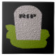 Diese phantastische Kachel hat einen grauen Grabstein mit RIP in tropfschwarzem Text, stehend auf einem grünen Grasflächen. Der Hintergrund ist schwarz, passend zu diesem morbiden Design.