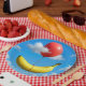 Ripe Banana Floating In Sky with Red Balloon Pappteller
