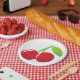 Ein Paar reife, hellrote Kirschen. Dieses Design wirkt auf diese Paper-Teller sehr effektiv