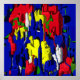 Poster, abstrakt, als Wandschmuck für eine gute Atmosphäre zu Hause oder auch im Büro, mit viel Blau das Risse enthält damit andere kraftvolle Farbdimensionen durchscheinen können.