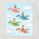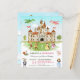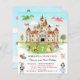 Ein märchenhafter Ritter und Prinzessin Kinder der Geburtstagsparty Einladung. Die Aquarellszene zeigt Drachen, die um die große Burg fliegen, während Ritter und hübsche Prinzessinnen auf dem Gras Pose haben. Personalisieren Sie Ihre Veranstaltung und Ihre Kontaktdaten.