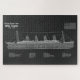RMS Titanic Ship Blueprint Pläne. Der berühmte White Star Ocean Liner aus dem 20. Jahrhundert sank, nachdem er 1912 mit einem Eisberg kollidierte. Schiffskonzept Zeichn von Plänen oder Schematiken mit Kontur für die Konstruktion von RMS Titanic