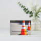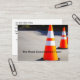 Asphalt and concrete road construction theme business cards created with road cones graphic backdrop and your business information detailed on the flip side.