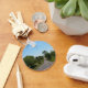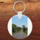 The keychain has a picture of a long straight road with small hills with a blue sky.