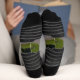 The socks have a picture of a long straight road with small hills with a blue sky.