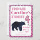 Roar Four Bear 4th Birthday Invitation. This handsome black bear illustration is perfect for your adventurous girl’s fourth birthday party. Gather up your family and friends and celebrate the fourth year. Your girl is turning four. She loves bears! Growl and roar your way though party fun. Make her birthday beary awesome with pin the tail on the bear and other growly bear games.