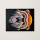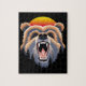 Roaring Grizzly Bär vor einem Sonnenuntergang mit Wald im Hintergrund. Jigsaw Puzzle für Bärenliebhaber und Fans von Wildtieren.