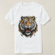 Eine schlanke, minimalistische, aber auffällige Vektorgrafik eines rauschenden Tigers, gefertigt mit kühnen schwarzen Strichen und faszinierenden goldenen Highlights. Dieses Design ist perfekt für Streetwear-Liebhaber geeignet und verströmt Power, Zuversicht und Stil. Es ist ein Muss für Fashion-Forward-Individuen.