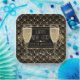 Dieses neue Jahr-Party-Teller mit einem rauschenden 20er-Jahre-Motiv aus Groß-Gatsby in Gold und Schwarz. Ein glamouröser Retro-Rahmen im Hollywood-Stil wird in der Mitte platziert, in einem Vintagen Art Deko-Muster. Auf beiden Seiten wird ein Sektglas platziert, auf dem Glitzer-Diamanten über den Boden springen.