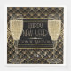 Dieses neue Jahr Party serviert Serviette in Gold und Schwarz. Das 20er-Jahre-Motto von Great Gatsby steht im Vordergrund. Ein glamouröser Retro-Rahmen im Hollywood-Stil wird in der Mitte platziert, in einem Vintagen Art Deko-Muster. Auf beiden Seiten wird ein Sektglas platziert, auf dem Glitzer-Diamanten über den Boden springen.