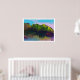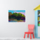 Digitales Gemälde eines farbenfrohen imaginären Berges. Die Wände sind mit einem Naturdesign dekoriert.