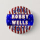 Wählen Sie für Knopf Robby Brunnen 2016 mit US Flaggeflaggenhintergrund, in den Schatten des Rotes, weiß und des Blaus: Präsidentschaftswahl 2016: Demokrat: Kampagnenknöpfe für Demokraten: Politik: politisch: Liberaler: Präsident: USA: Kandidaten