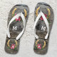 Des tongs design romantique ornés de chaussures de cheval dorées ornées de fleurs sur un arrière - plan en bois rustique. Beau pour un amateur de cheval !