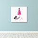 Belle et élégante couture sur toile qui lit Haute Couture. Art original avec une robe rose sur la forme, talons roses et une boîte noire et blanche. Vous pouvez customiser avec votre nom. Un grand accent pour toute chambre de fashionista. Vous pouvez même modifier la couleur de l'arrière - plan dans la fonction personnaliser.