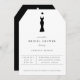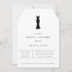 Silhouette de robe noire moderne, invitation à la douche nuptiale. Design de typographie simple et chic. Le dos de la carte est en noir classique.