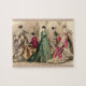 Art vintage avec peinture de dames victoriennes dans une salle habillée de robes de bal.