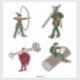 Diese Robin Hood-Aufkleberkollektion beinhaltet Robin Hood, der einen Pfeil schießt, und drei seiner fröhlichen Männer: Little John, Will Scarlet und Will Stally.