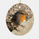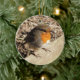 Ein niedliches kleines europäisches Rotkehlchen, das auf einem Zaun sitzt und die Wärme der Sonne genießt. Fotografisches Design.