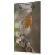 Ein europäischer Robin (Erithacus rubecula) stehend auf einer defekten Baumniederlassung umfaßt in den Flechten.