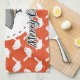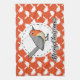 Robin on Orange White Bird Pattern - Merry Xmas Geschirrtuch