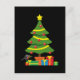 Robin mit heiligen und farbenfrohen Geschenken unter einem Weihnachtsbaum mit roten Kugeln, gelben Band und einem großen Stern verziert.