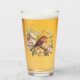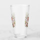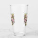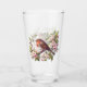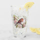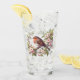 Das ist ein Trinkglas, das unter einigen Blüten der Blume einen Robin hat.